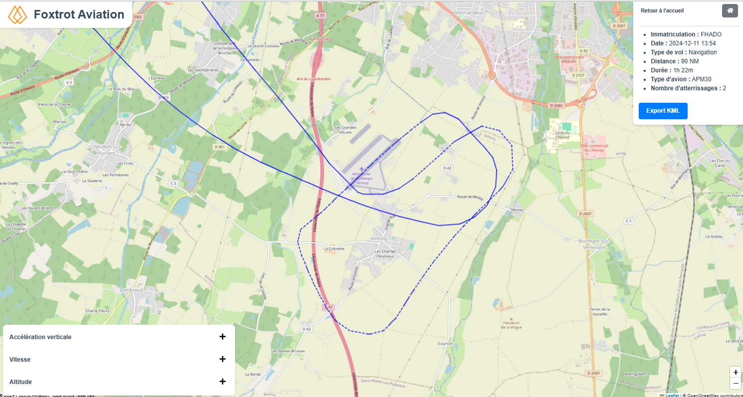 Vos données de vol sont transmises en temps réel par le boitier connecté et sont disponibles sur la plateforme Foxtrot Aviation.